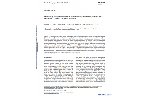 李佳楠等:Analysis of the performance of post-lingually deafened patients with Nurotron Venus cochlear implants