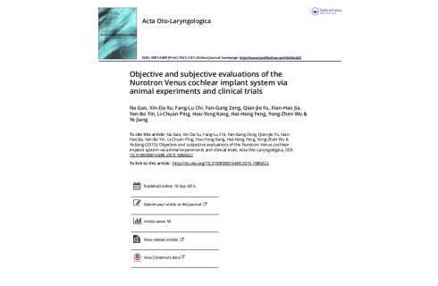 高娜等:Objective and subjective evaluations of the Nurotron Venus cochlear implant system viaanimal experiments and clinical trials
