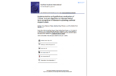 Lichuan Ping等-Implementation and preliminary evaluation of C tone A novel algorithm to improve lexical tone recognition in Mandarin speaking cochlear implant users-2017