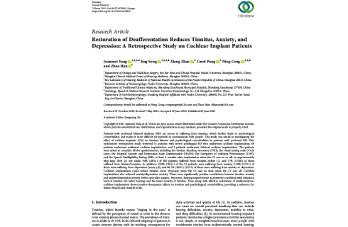 2021-Restoration of Deafferentation Reduces Tinnitus, Anxiety, and Depression-A Retrospective Study on Cochlear Implant Patients