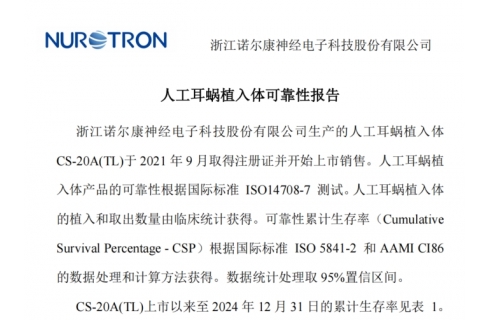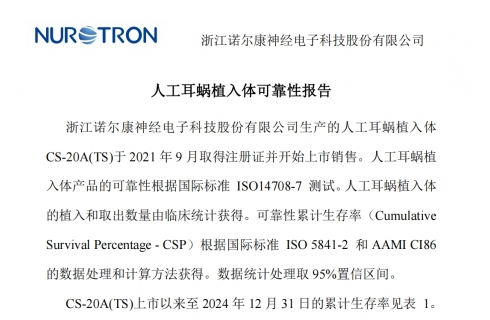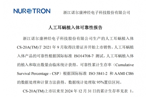 CS-20A(TM)人工耳蝸植入體可靠性報告